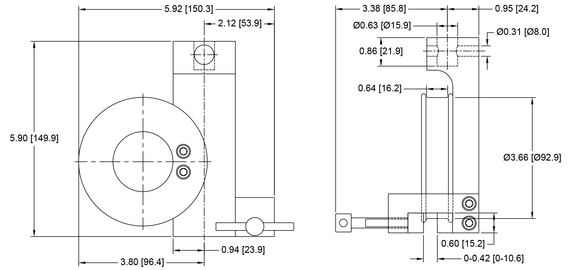 Includes integrated eye end mounting, and requires an eye end adapter to mount to Mark-10 force gauges or force sensors, and test stands.